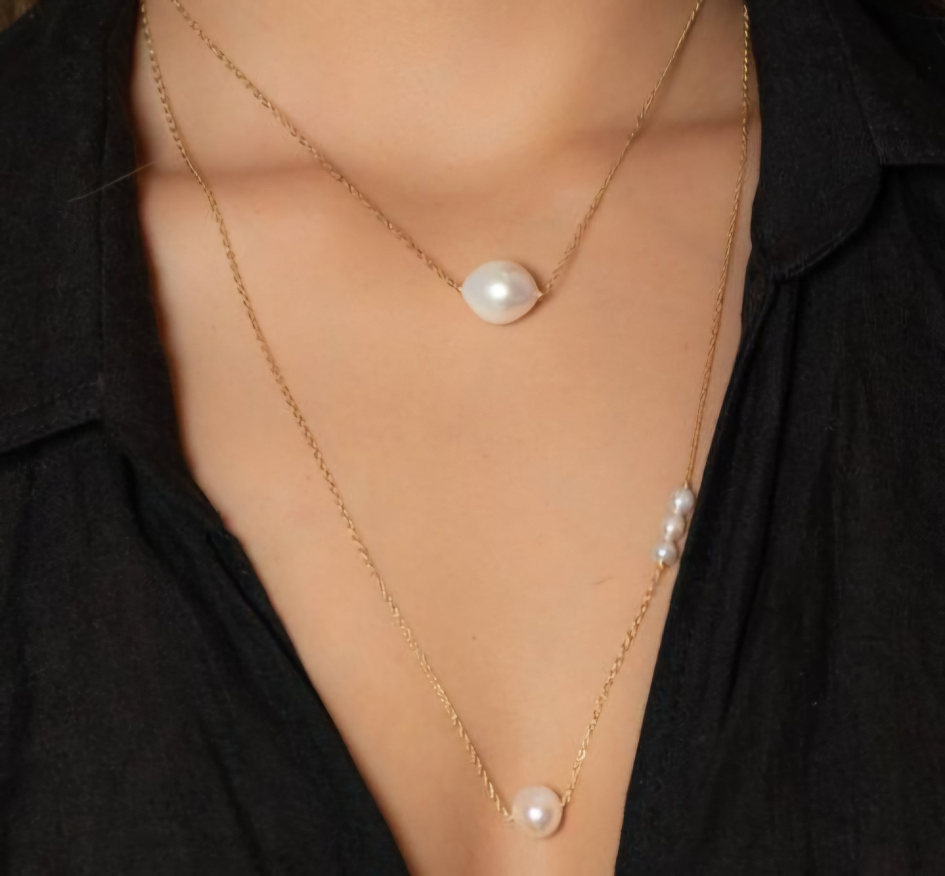 A layered necklace that combines elegance with contemporary charm. Lustrous pearls in double strands, perfect for creating depth and detail.