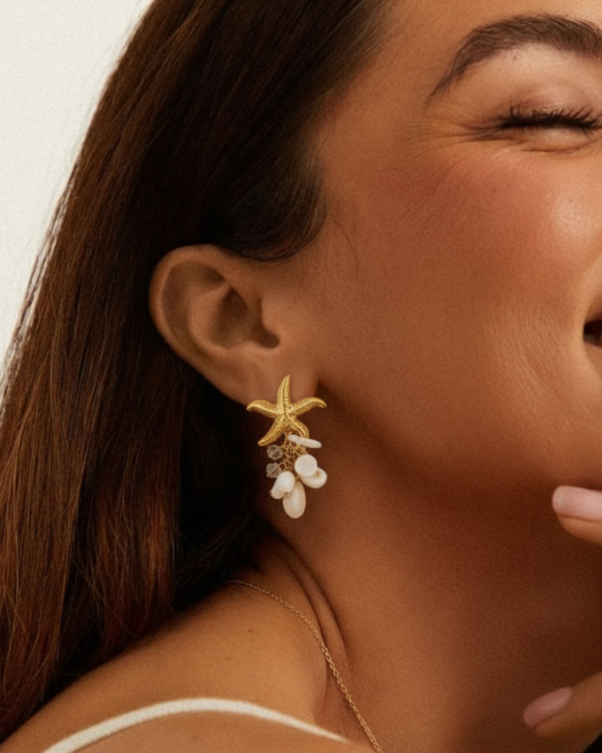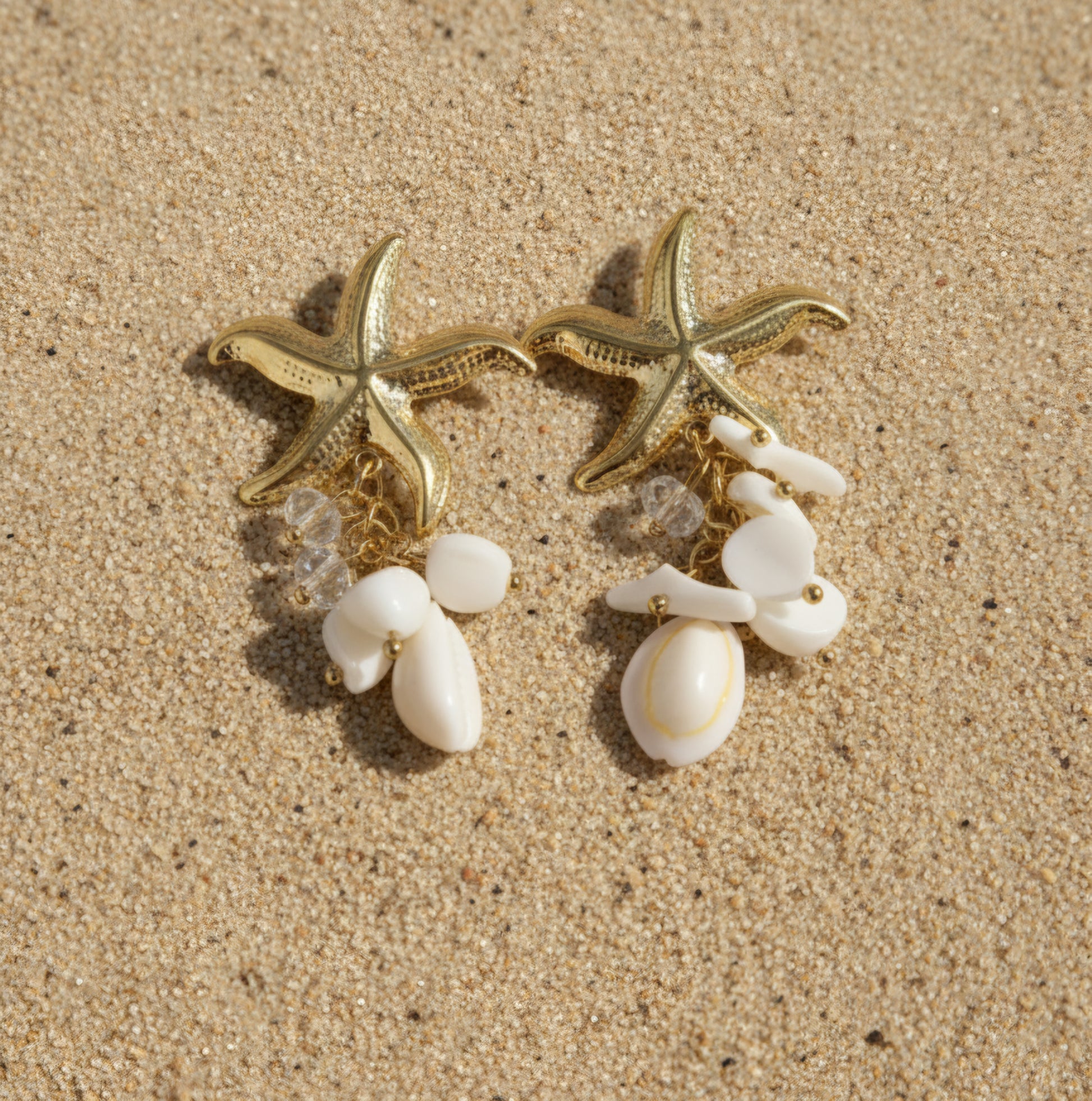 Featuring golden starfish accented with sparkling bezeled drops, these earrings bring a refined, ocean-inspired shimmer to your look.